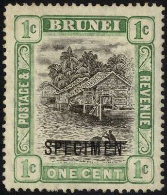 1907 1ct grey-black and pale green overprinted SPECIMEN Type D12a, large part o.g. with reversed watermark. SG...
