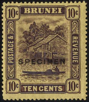 1922 10ct purple on pale yelloe paper overprinted SPECIMEN Type D16, part o.g. with some hinge remainder. SG 42as, cat £60