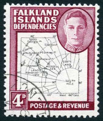 1948 4d Thin Map used with R5 dot on 'T' variety, one perf at top just nibbled. SG G13a...