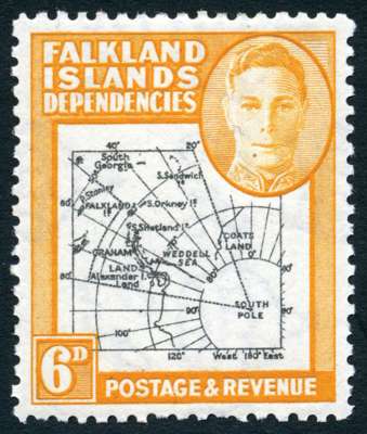1946 6d Thick Map large part o.g. with Plate 1 R3/9 extra island, a few irregular perfs. SG G6aa, cat £275