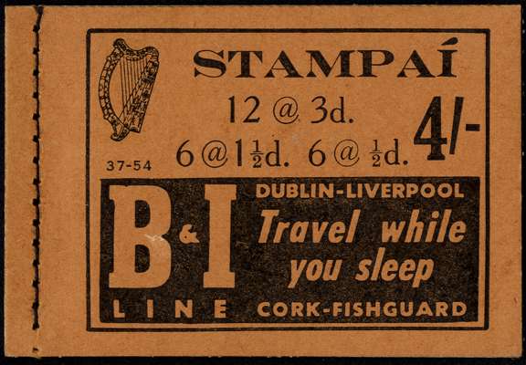 Booklets. 1954 4/- booklet, edition 37-54, all watermarks upright, perfs mainly good. SG SB10, cat £120