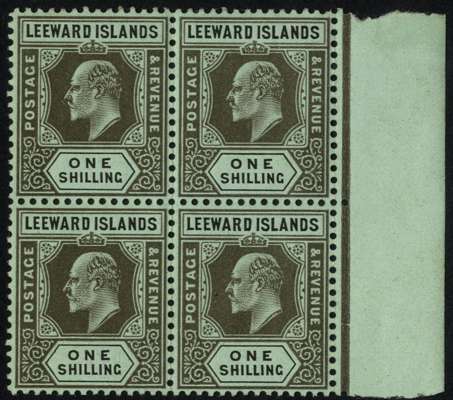 1911 1/- (grey-back and) black right marginal block of four, u/m. SG 43, cat...