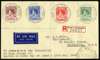 1937 Coronation set of four on registered airmail envelope to Australia, Port Moresby CDSs of 14 MY. The 1d value with...