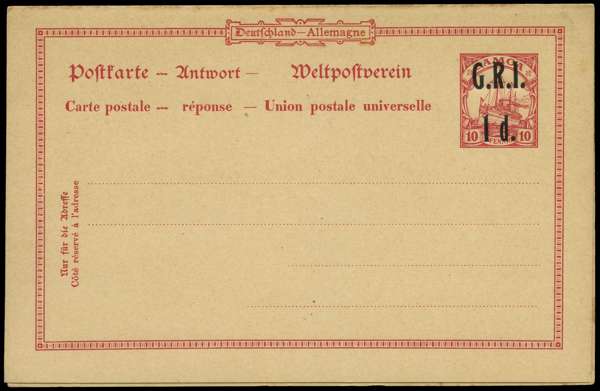 POSTAL STATIONERY: New Zealand Occupation 1916 reply paid card overprinted "G.R.I./1d", unused. Fine. H&G 4