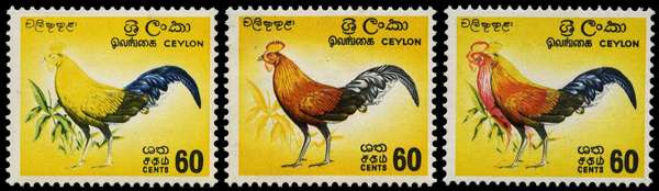 1964-72 50c Ceylon Jungle Fowl three unmounted mint singles comprising 'RED OMITTED', 'BLUE AND GREEN OMITTED' and 'RED SHIFT'. Fine. SG 494a/b/ var, £100+