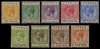 1912-5 10pa - 12pi short set of nine, part or large part o.g., 2pi with one short perf otherwise good. SG 74-82, £110