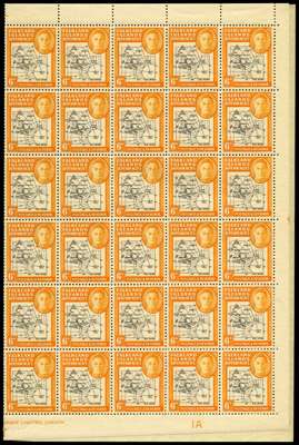 1946 Thick Map 6d Plate 1 sheet of sixty, unmounted o.g. (central vertical fold) with R1/2 missing 'I', 3/9 extra island and 4/6 extra dot by oval. SG G6, a, aa, b, d, £984