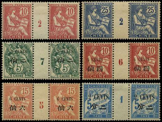 French PO's In China: 1902-11, assorted values from 10c carmine to Postage Due 2c on 5c pale blue, all millesimes pairs, large part o.g. with 2c on 5c blue-green and 4c on 10c carmine unmounted, generally fine. SG 38-D92