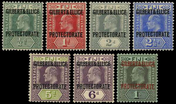 1911 set of seven overprints on Fiji, part or large part o.g., fine except 5d slightly foxed on reverse. SG 1-7, £180