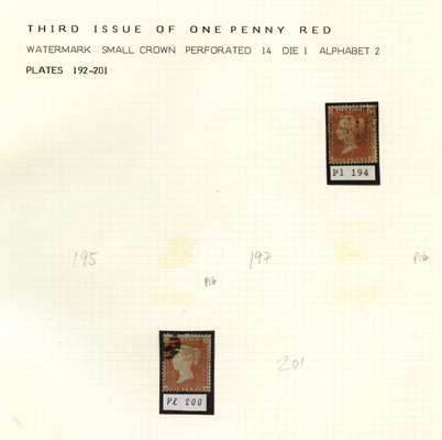 1855 (Jan) 1d red-brown (shades), Die I, Alphabet II, Blued paper, perf 14, used, plates 194, 200 to 204 and R1, R3 to R6 with R5. pair, all lettered "QH". Fair to fine. SG 22 (11)