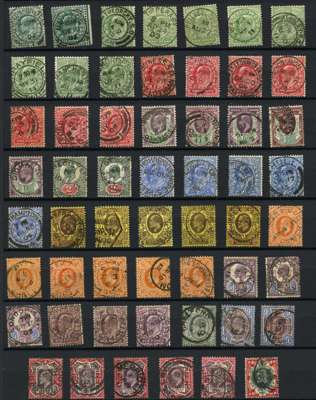 1902-13 mixed printings to 1s used with selected shades selection arranged on a Hagner page mainly with neat cds. Generally fair to superb. (48)