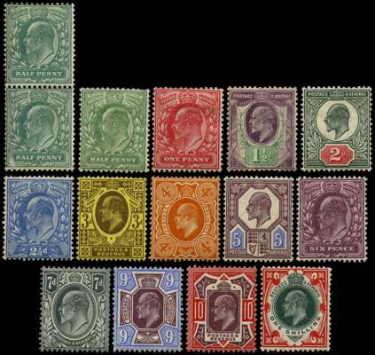 1902-13 mixed printings set of fourteen to 1s (less 4d green and brown), part to large part og. Fair to fine. SG Btwn 215/314