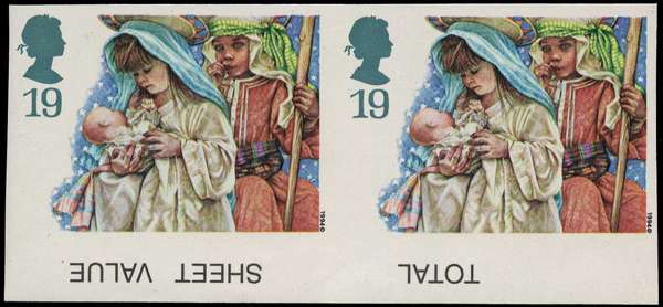 1994 19p Christmas, Mary and Joseph, bottom marginal, horizontal imperforate, pair fine unmounted o.g. SG 1843a £175