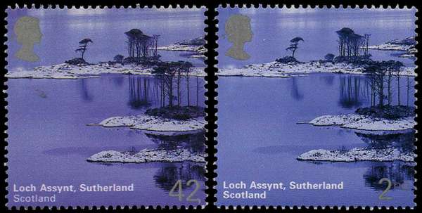 Trial: 2003 A British Journey: Scotland, Loch Assynt, Sutherland denominated "42p" vice"2nd" as issued, gummed, with phosphor, offered with issued stamp for comparison fine unmounted o.g. SG 2385var