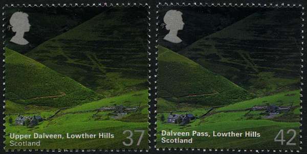 Trial: 2003 A British Journey: Scotland, Dalveen Pass, Lowther Hills denominated "37p" vice "42p" and Inscribed "Upper Dalveen" vice "Dalveen Pass" as issued. Gummed, with phosphor, offered with issued stamp for comparison fine unmounted o.g. SG 2388var