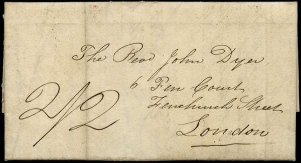 1832 (13 July) stampless entire letter addressed to London, annotated '2/2', the reverse with Kingston despatch and London (18.8) arrival ds; with interesting contents mentioning the arrest of a Weslyian Preist for praying in public; vertical filing fold and back torn around seal. Good