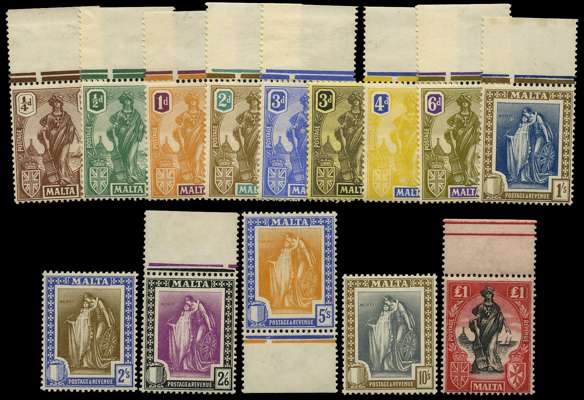 1922-6 set of seventeen, o.g. with some marginal with the stamp unmounted including the £1, but this has a vertical gum crease. SG 123-140, £250