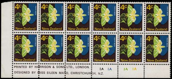 1973-76 4c multicoloured, left corner plate block of twelve variety 'BRIGHT GREEN (WING VIENS) OMITTED'. Fine unmounted og. SG 1011f, £72+