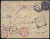 POSTAL HISTORY: 1889 (6 Jan) well-travelled envelope to New Zealand addressed from England bearing 1880-81 1d lilac tied by "MAIDSTONE/N/JA 6/89/STATION-OFFICE" sideways duplex, boxed "UNCLAIMED" in purple and "NOT KNOWN BY/LETTER CARRIERs/CHRISTCHURCH” in violet handstamps, via Yalding (6.1), Plymouth (8.1) and arriving in Wellington (4.3) (twice, one poor), "N.Z./RPO-C/6 MR 89/13", then going backwards and forwards between Timaru (twice), Waimate, Studholme, Christchurch (four, two in red and one a squared circle in black) and ending at the "N.Z/D.L. OFFICE/13 JY 89" in violet. A most unusual envelope, fine