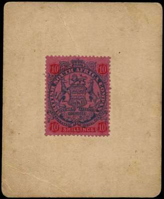 1900 10s. slate and vermilion on rose Marshal Hole Currency Card, slight creasing affecting adhesive, otherwise fine. SG 50