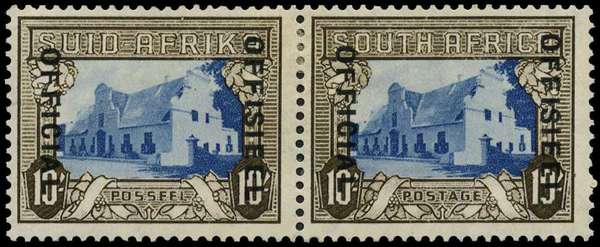 Official: 1940 10s blue and sepia with "OFFICIAL" reading down at left, fresh facially, rather heavily hinged, part o.g. SG O29