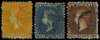 1869 4d yellow, 1/- indigo and 1/- brown,...