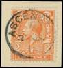 1912-22 2d orange tied to paper piece by complete 22mm code 'A' Ascension cds for '27 JA...' SG Z42 £95