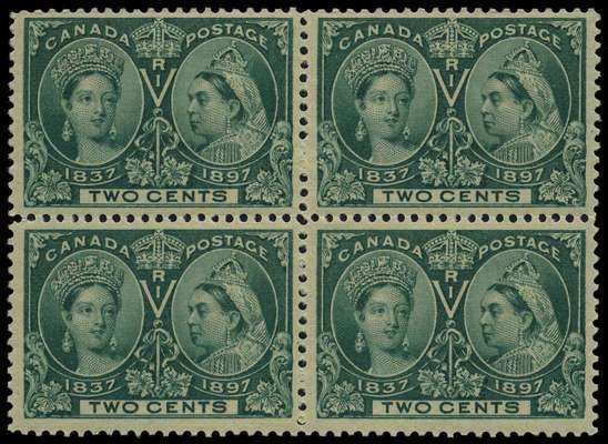 1897 2ct deep green block of four with full o.g., minor bends, well centred for this. SG 125, £128
