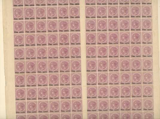 1888-90 2c on 4c rosy-mauve (Type 31, plate 3) complete top-half sheet of 120, some perf separation otherwise fine o.g SG 202 £420