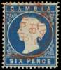 1881 6d blue double strike of Gambia/Paid cds...