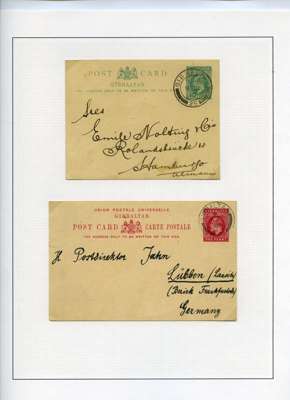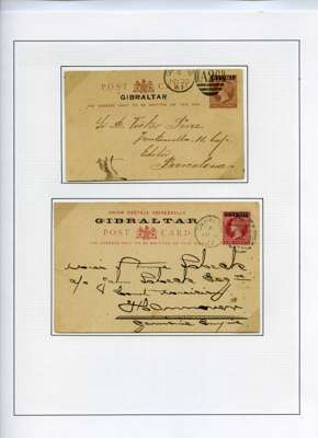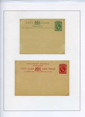 POSTAL STATIONERY: 1886-1912 QV-KGV mint (5) and used (8) , including 1886 ½d and 1d Gibraltar overprints (HG1 and 2) used, Spanish currency overprints used, (13)