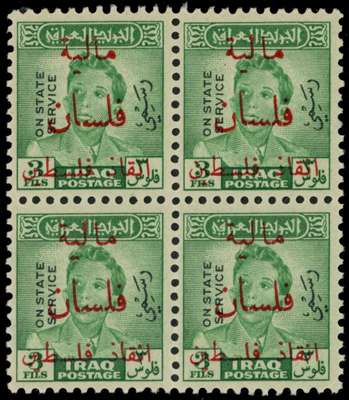 1949 2f on 3f green, overprint in red, obligatory tax, block of 4 unmounted o.g. SG T324