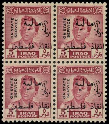 1949 5f brown lake, obligatory tax, block of 4 unmounted o.g. SG T327