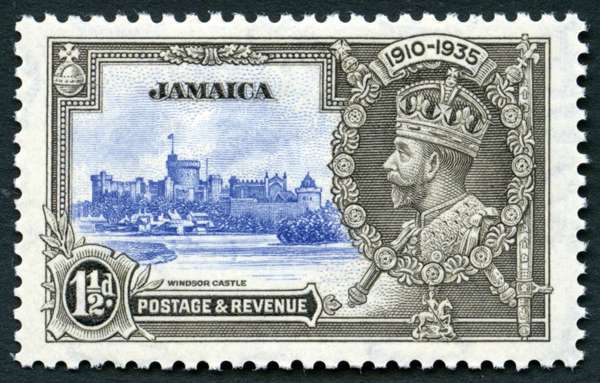 1935 Silver Jubilee 1½d with 'Plate 1' R9/1 extra flagstaff, seemingly u/m wuith a minor internal bend. SG 115a, cat £90