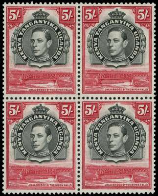 1944 5s black and carmine (perf 13¼ x 13¾) block of 4 unmounted o.g. SG 148b £200