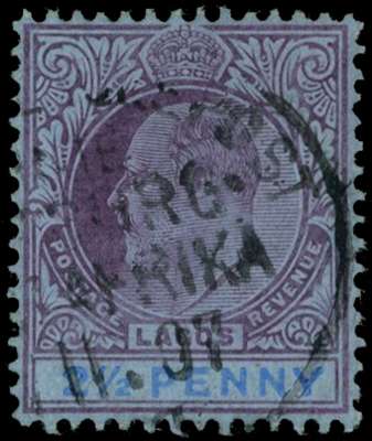 1905 2½d dull purple and blue on blue,...