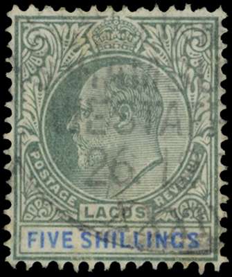 1905 5s green and blue, cancelled part 'DEUTSCHE-SEEPOST/LINIE/HAMBURG/WEST AFRIKA', cds fine used SG 62 £140