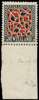 1941 Single watermark 9d scarlet and black, unmounted o.g. Bottom marginal with deep selvedge, this with a bend and a tiny toned spot well clear of the stamp; often misidentified. SG 630, £95