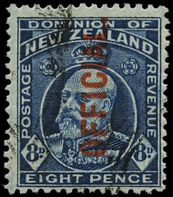 Officials. 1910-6 8d indigo-blue perf 14 x 14½, watermark inverted, lightly used. SG O76aw, £95