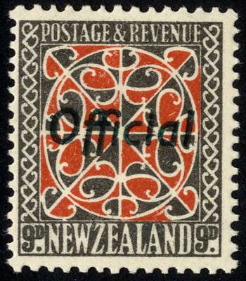 Officials. 1938 9d red and grey-black with green overprint, large part o.g. SG O129, cat...