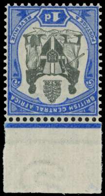1897 1d blue and ultramarine, top marginal example with watermark inverted, fine unmounted o.g. SG 43w £170
