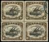 1910 4d black and sepia block of 4 (perf 11, watermark sideways) l/r stamp shows R 4/3 deformed 'd', Port Moresby cds fine used SG 63a £150