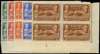 1939 Tercentenary set of five, o.g. lower right corner blocks of four each with Plate 1, hinged on selvedge only. 1d with small adhesion on reverse of selvedge. SG 257-61, £68