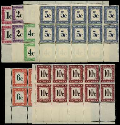 Postage Due. 1961 set of six in unmounted o.g. corner blocks of ten. SG D45-50, £105