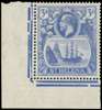 1922 3d bright blue l/l corner marginal example showing R 5/1 'cleft rock' variety, fine o.g. SG 101c £110