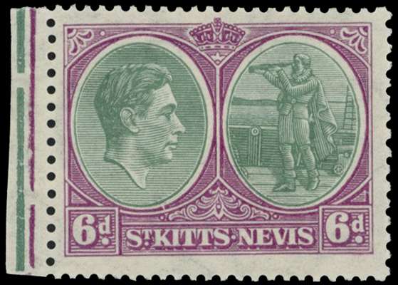 1938 6d green and bright purple, l/h marginal example showing R 12/1 'break in oval ' variety, fine unmounted o.g. SG 74a £200