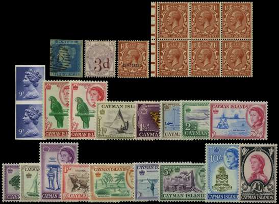 1841-1971 GB and Commonwealth mint and used selection of issues we note: 1841 2d blue Pl.4 IK used, 1883 3d on 3d lilac, 1924 1½d red-brown optd 'Cancelled' and booklet pane of six showing wmk inverted, 1971 9p deep violet, blind perf vertical pair ( Not to be confused with listed imperf variety SG X883), and Cayman Islands 1962-64 set of 15 to £1 carmine and black. fine.