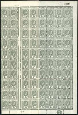 1942 2c grey perf 15 x 14 sheet of 120 unmounted o.g., folded and a little separation in places, R10/5 RP serrated edge. SG 252b, ba