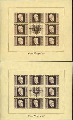 1946 First Anniversary of Establishment of the Renner Government, imperforate miniature sheets set of four. Fine unmounted mint. These sheets were purchased in Vienna in 1946 by a member of the GPO and come with the original envelope. SG MS976
