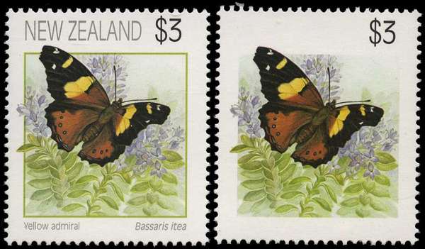 1991-2008 $3 Yellow Admiral with grey (inscription) and apple-green (frame) omitted, unmounted o.g. SG 1642a, £600